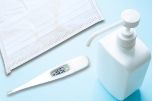 来院の患者様に手指の消毒、およびマスク着用をお願いしております。