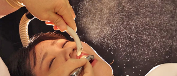 気体中に浮遊する微小な液体または固体の粒子と周囲の気体の混合体をエアロゾルと言いますが、治療中に発生するエアロゾルによる空気環境の汚染を最大限抑えることが重要です。